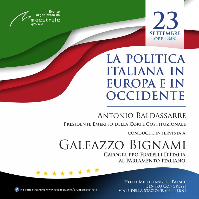 La politica italiana in Europa e in Occidente: a Terni il confronto promosso da Maestrale Group con l’On. Galeazzo Bignami